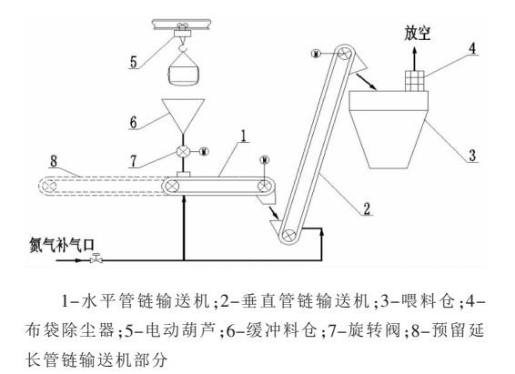 氮氣循環(huán)氣力輸送系統(tǒng)工藝流程圖